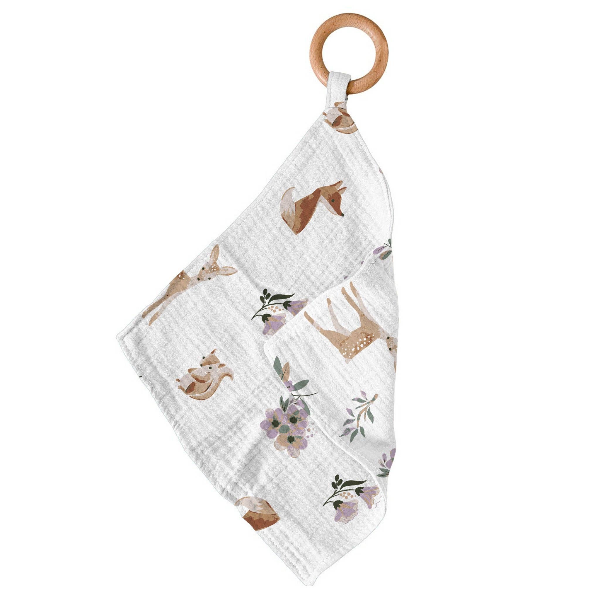 The Newcastle Teether is made from our popular 100% Bamboo mini blankies, with a removable beach wood ring for easy cleaning. Wood has natural antibacterial and antimicrobial properties, making wood a superior teether choice. Our teether and blankie combo provides little ones gum relief along with a soothing square to snuggle.